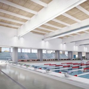 – una seconda vasca, da 25×21 metri e 8 corsie, con profondità di 1,80 metri e con caratteristiche costruttive analoghe a quelle della vasca da 50 metri.