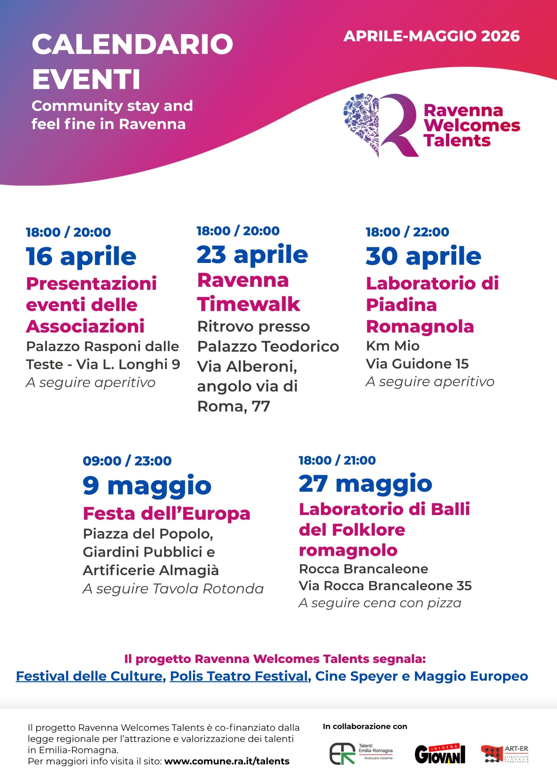 - Community RA.WE.TA. – Calendario eventi del progetto Ravenna Welcomes Talents
